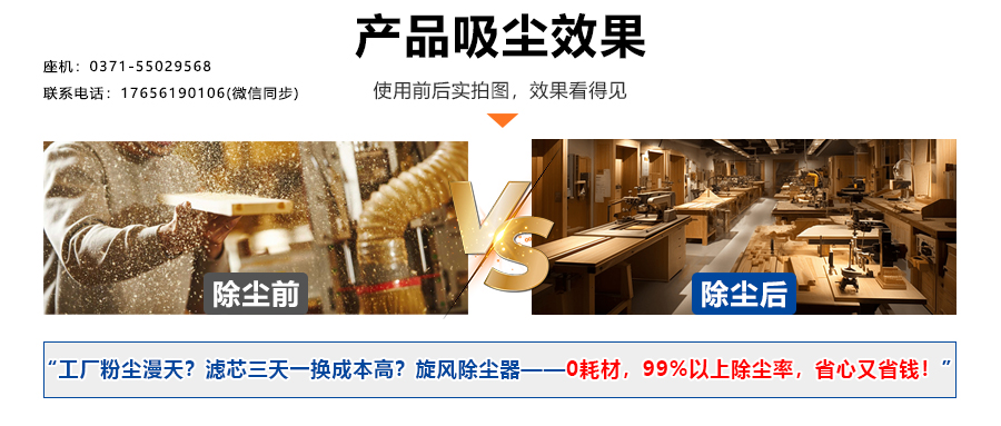 传统吸尘器的局限在于 “单一滤网 + 粗放拦截”:仅靠滤网单次阻挡大颗粒,细粉尘会直接随气流排出,不仅清理不彻底,倒灰时滤网附着的粉尘还会飞扬,形成二次污染。而这款旋风除尘器采用 “旋风分离 + 布袋精滤” 的多级过滤体系 —— 含尘气流先进入旋风仓,借助高速旋转产生的离心力,将 99% 的粉尘(包括大颗粒与部分细粉)甩向仓壁并沉降至集尘桶,这一步已经覆盖了传统吸尘器的过滤范围;剩余极细微的粉尘则进入高精度布袋进行二次拦截,彻底锁住了传统吸尘器无法处理的细粉,从原理上避免了 “细粉随风吹出” 的问题,实现了全粒径粉尘的高效捕捉。
